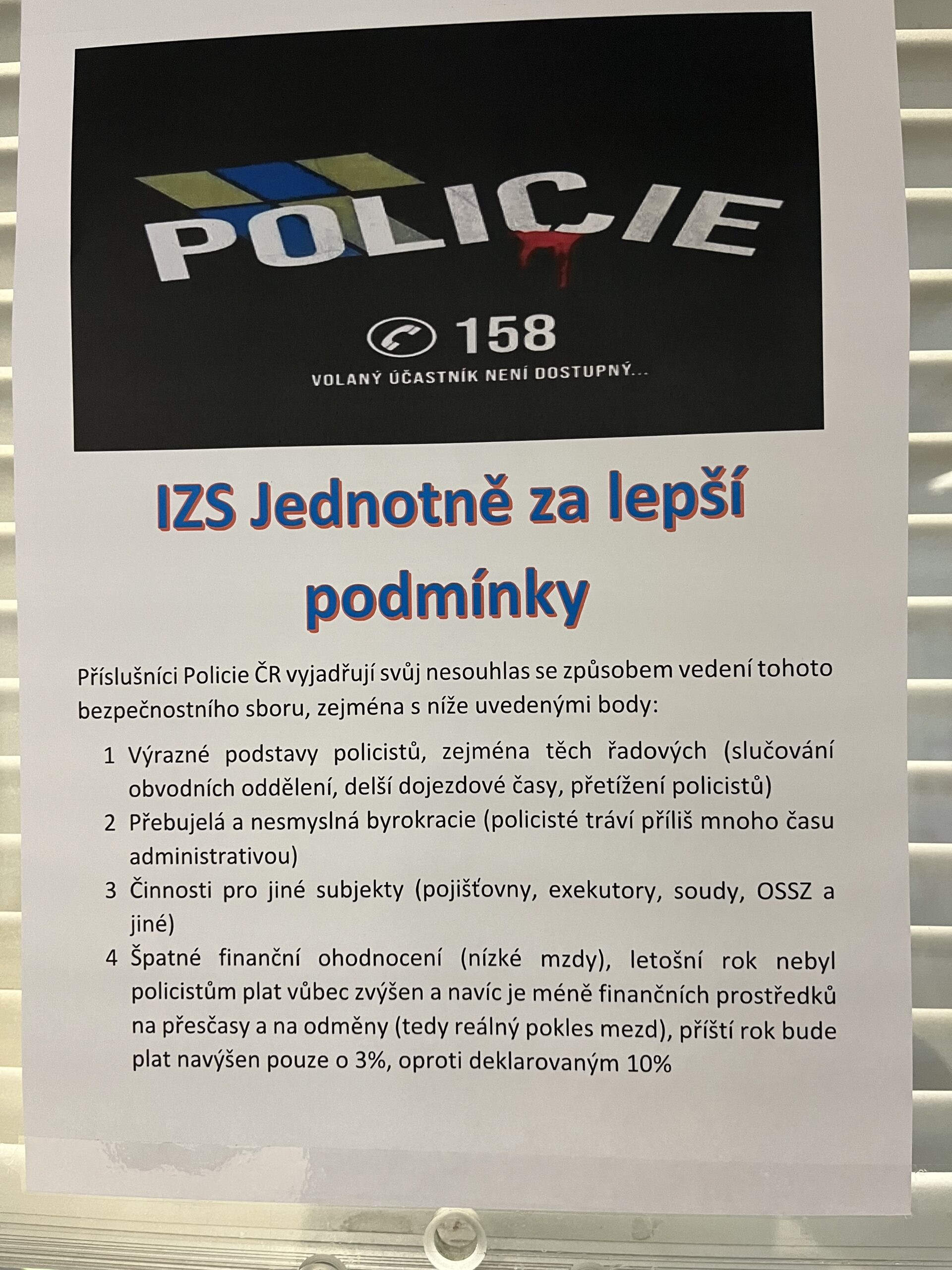 Situace v Policii České republiky dosáhla bodu varu! 😱 Na služebně v Jablonci nad Nisou visí ostrý leták s heslem „IZS Jednotně za lepší podmínky“ 🛑📋, který detailně popisuje neúnosný stav bezpečnostního sboru. Policisté volají po okamžitých změnách a jasně varují před kolapsem. 🚨👮♂️